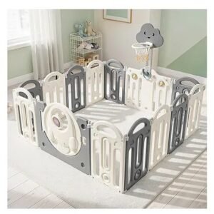 Foldable Baby Playpen with Safety Gate and Activity Panels
