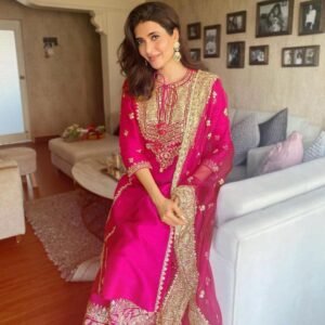 Pink Color Embroidery With Sequence Work Palazzo Suit