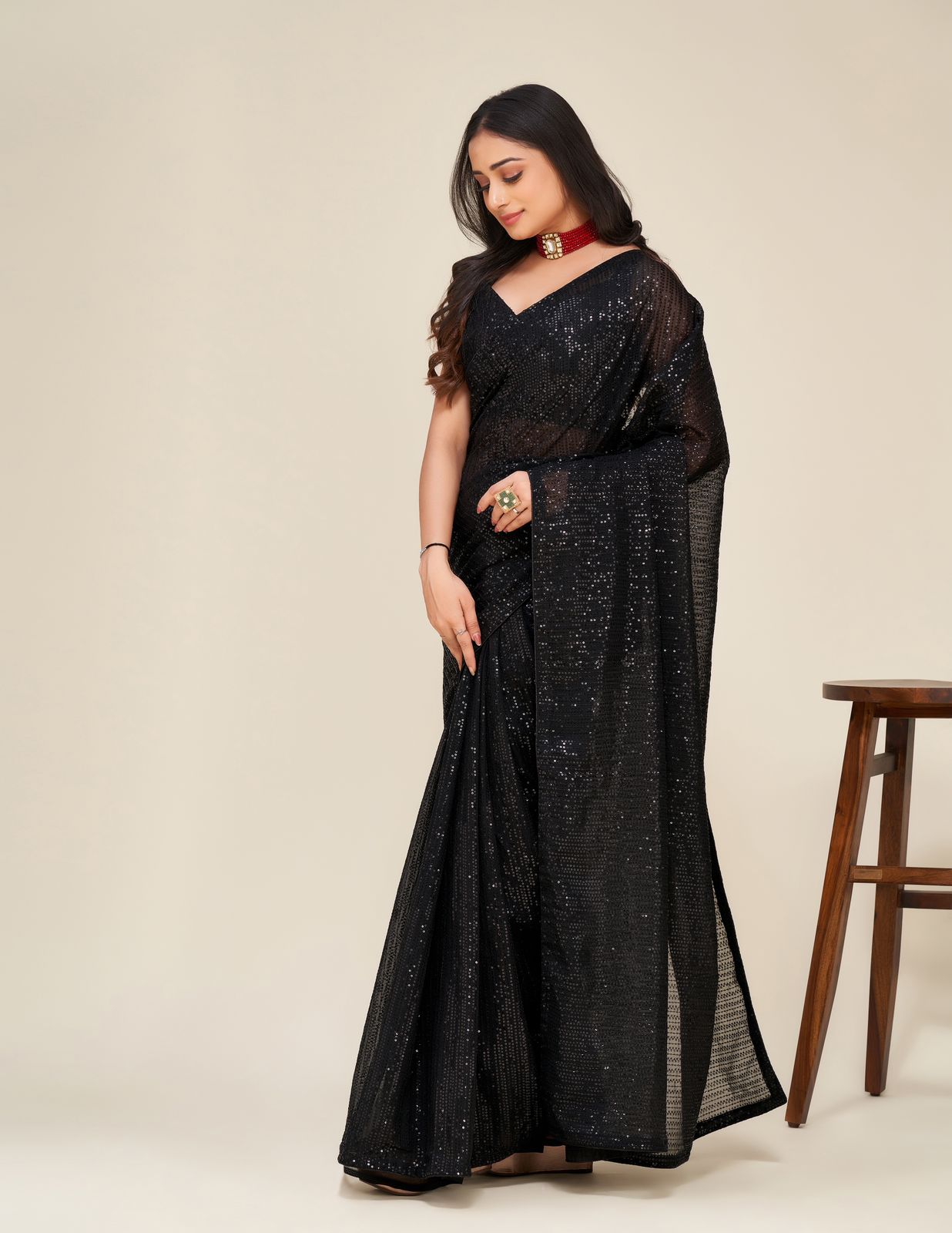Black Color Beautiful Sequence Work Saree