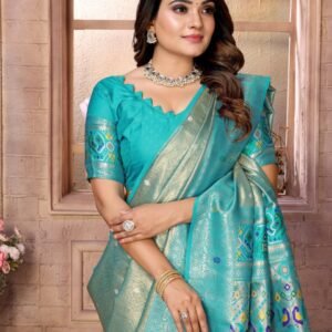 Teal Blue Color Banarsi Silk Saree