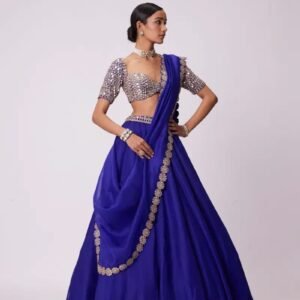 Be the first to review “Cream Threadwork Semi Crepe Readymade Lehenga” Cancel reply