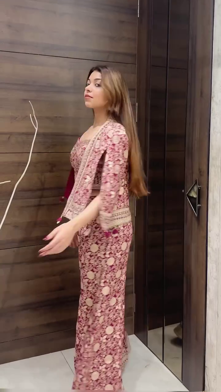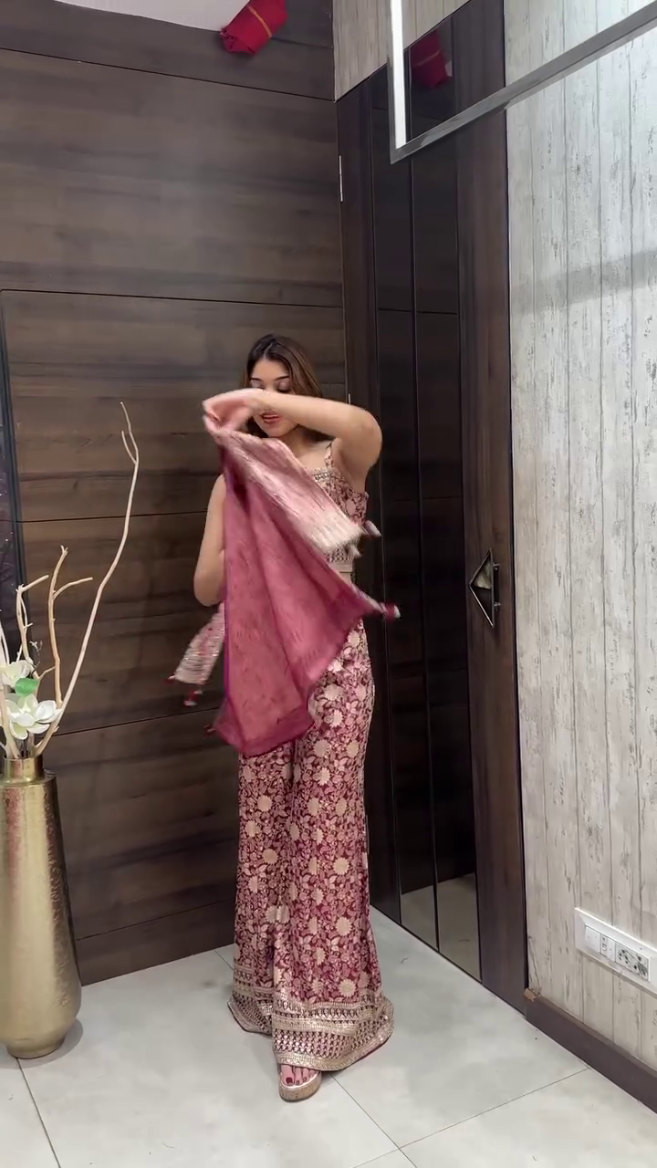 & Free ShippingDesigner Embroidered Sharara Set with Cape Jacket