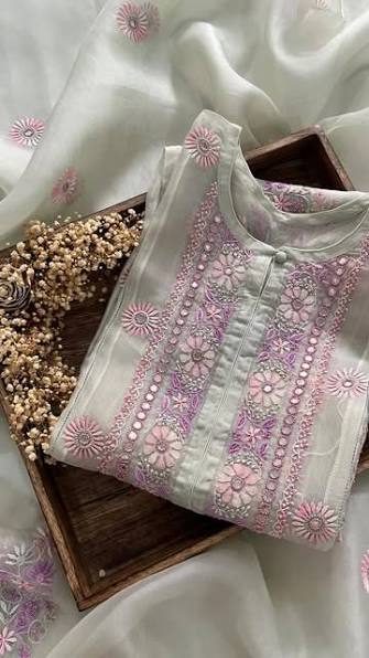 The lightweight and breathable nature of the fabric makes this kurta a comfortable choice for all-day wear, particularly in warmer climates. Its versatility allows it to be paired with various bottoms, such as plain churidars, palazzo pants, or even straight trousers, depending on the occasion. The soft color scheme and timeless embroidery ensure that this piece will remain a classic in your wardrobe for years to come. Whether you’re attending a family function, a religious ceremony, or a festive celebration, this elegant Lucknowi Chikankari kurta promises to make you feel graceful, stylish, and comfortable. It truly embodies the perfect blend of rich cultural heritage and modern design sensibilities, making it a treasured addition to any collection.