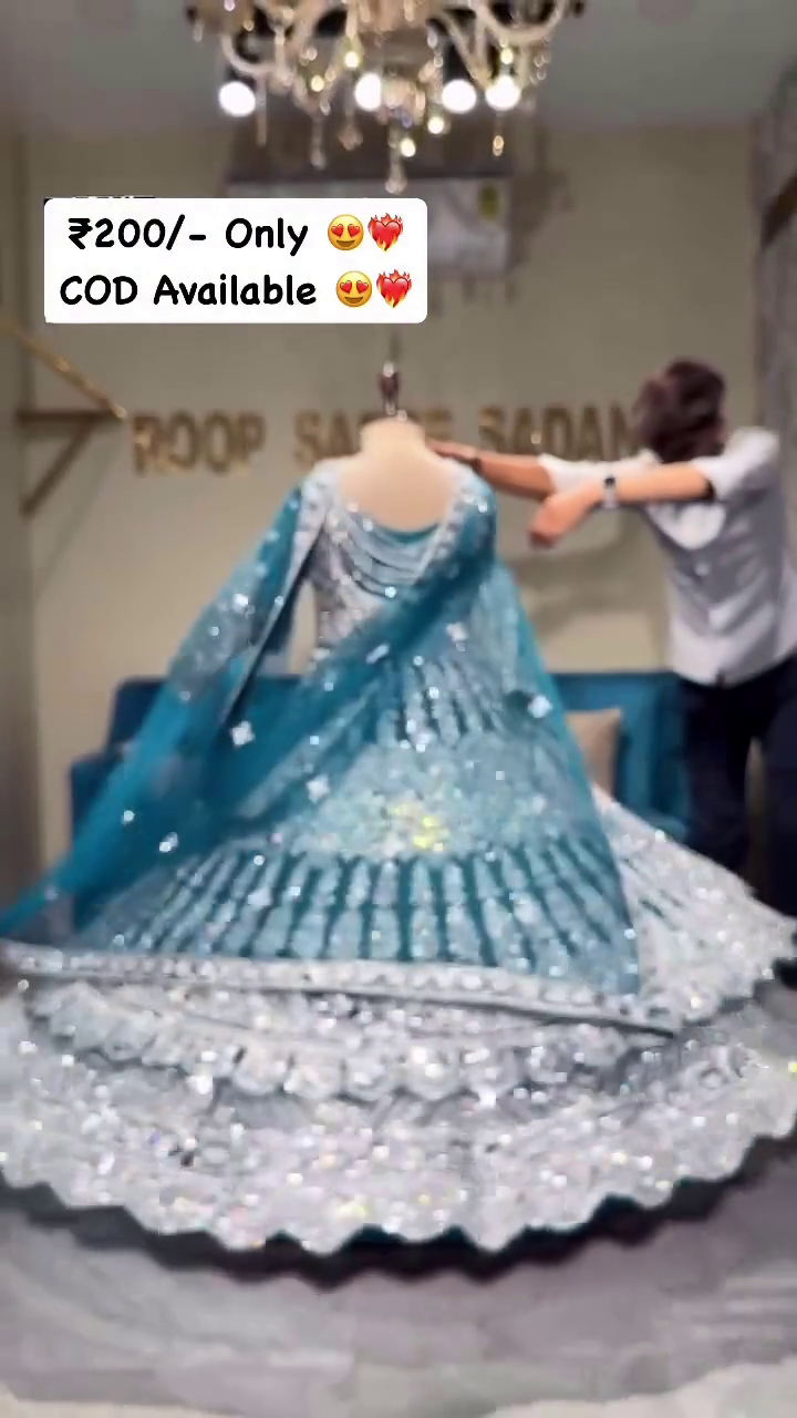 Lehenga: Soft Silk Blend with Heavy Thread & Foil Embroidery