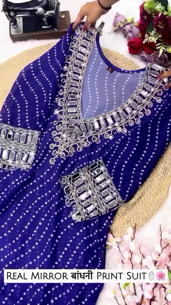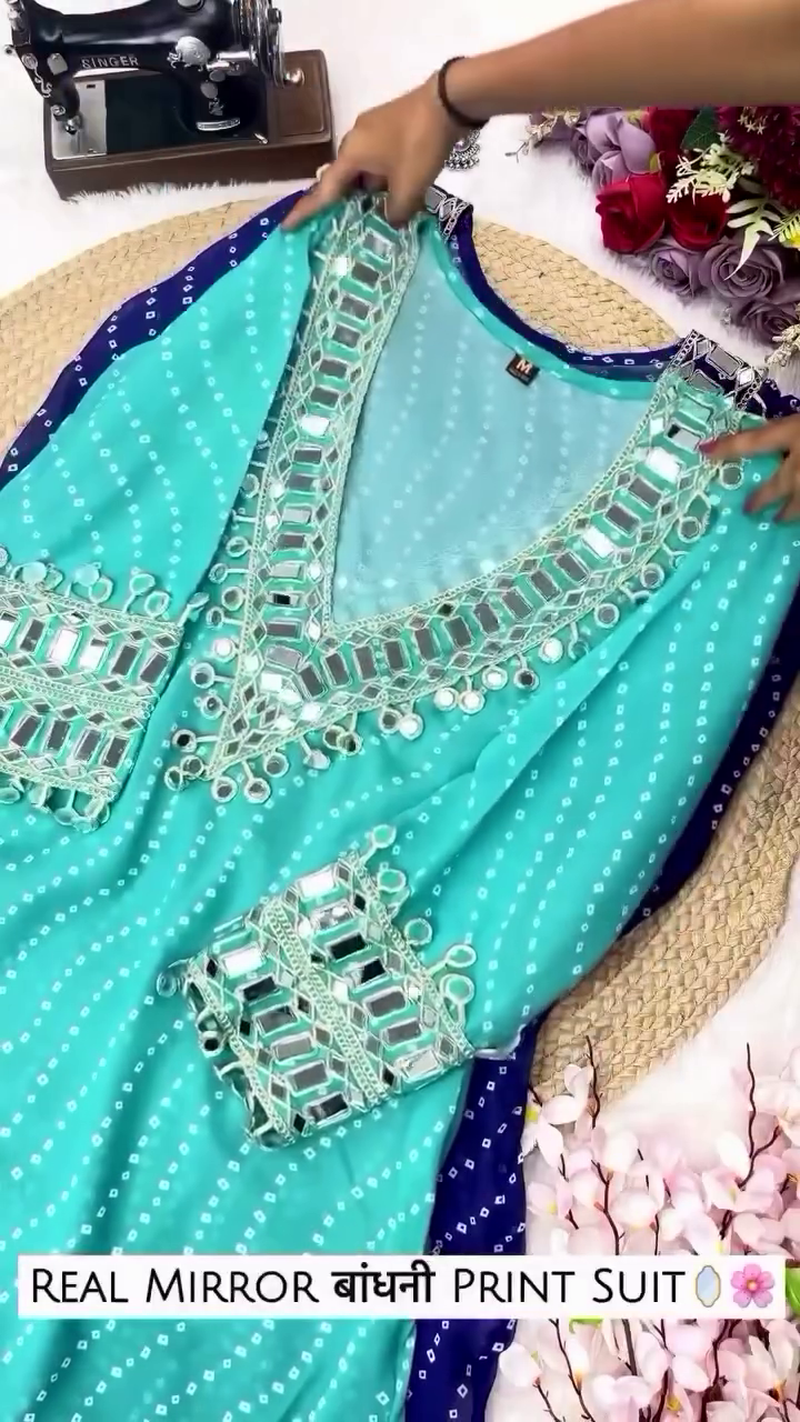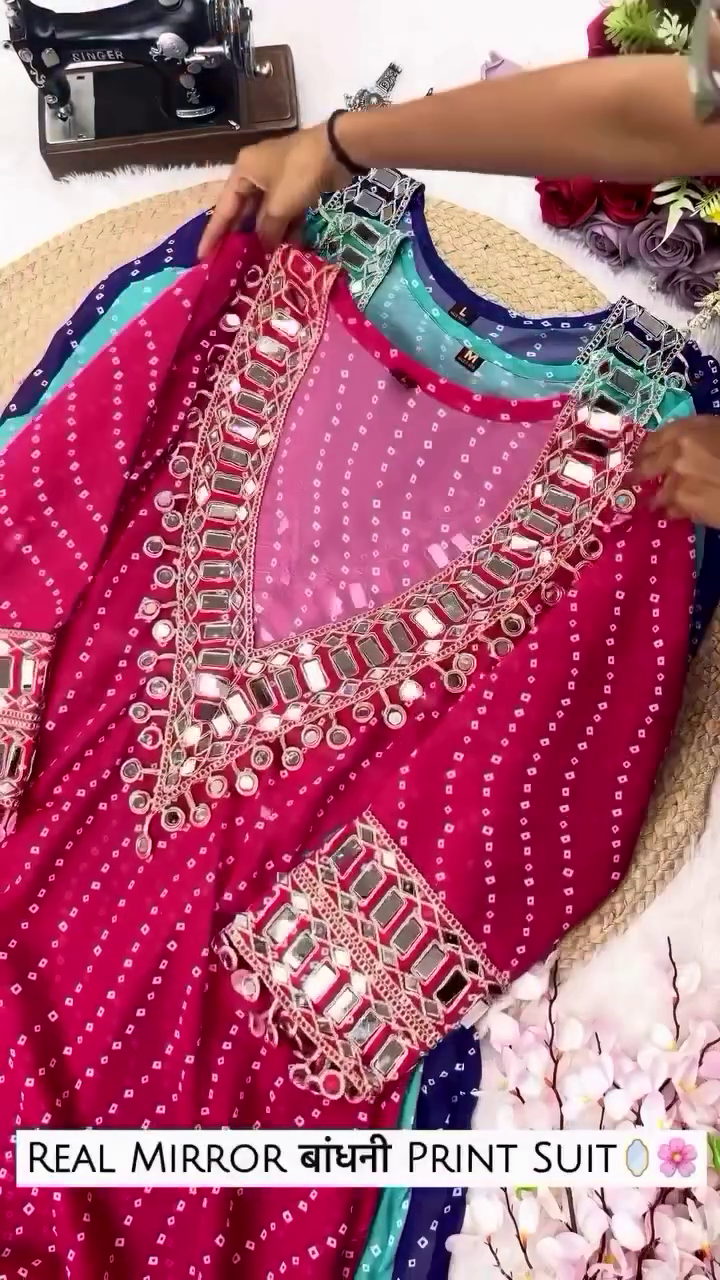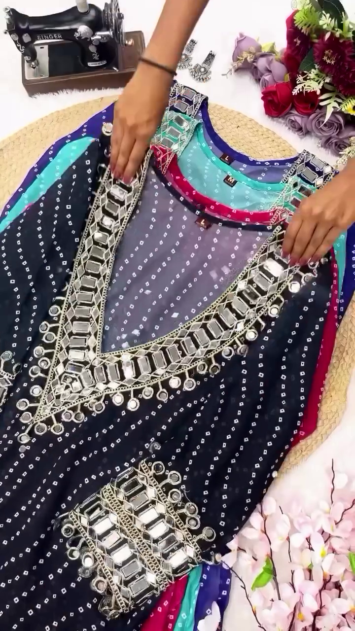 Top: Faux Georgette with Mirror Work & Bandhej Print