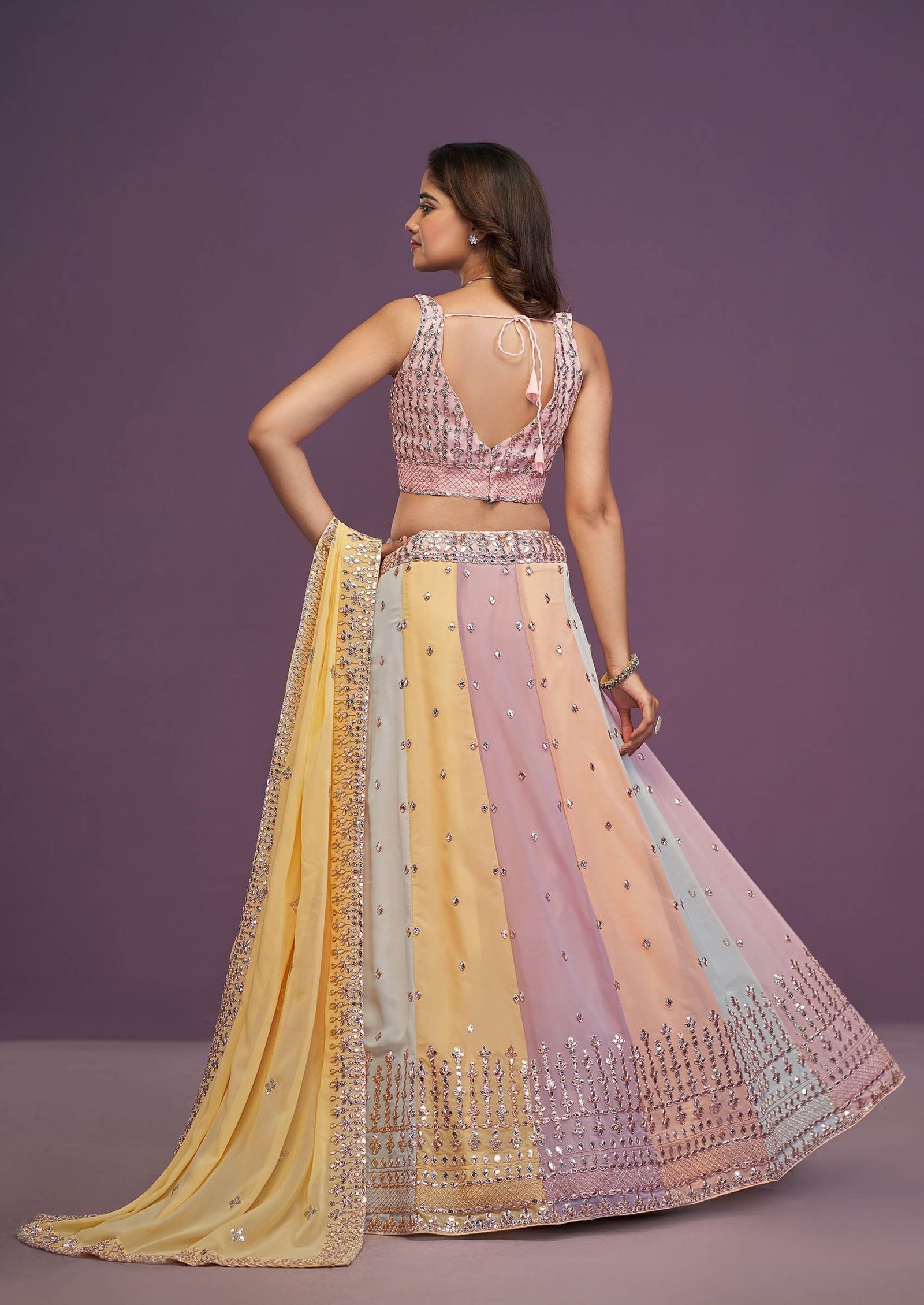 Multicolour Thread Sequin Embroidered Georgette Lehenga Set