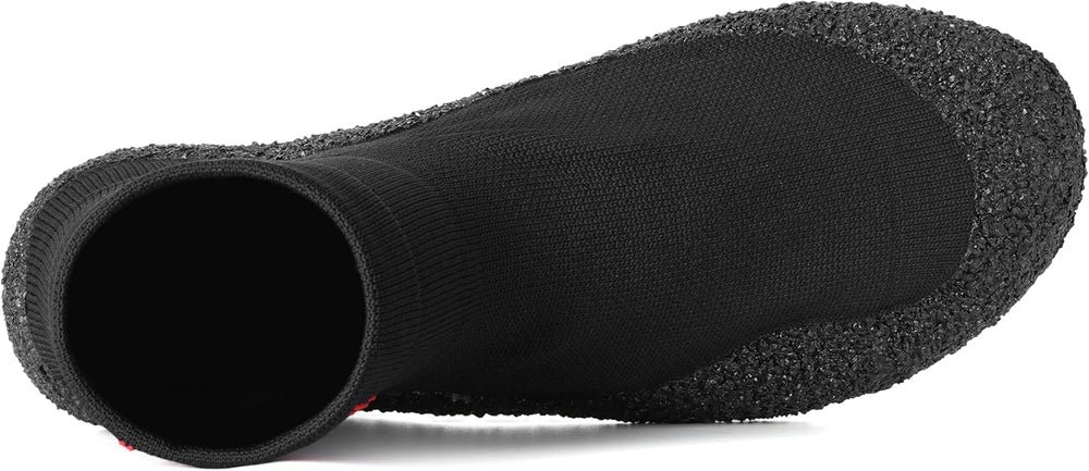 Comfortable slip-on socks with a textured anti-slip sole, designed to provide secure grip, warmth, and protection on smooth indoor surfaces.