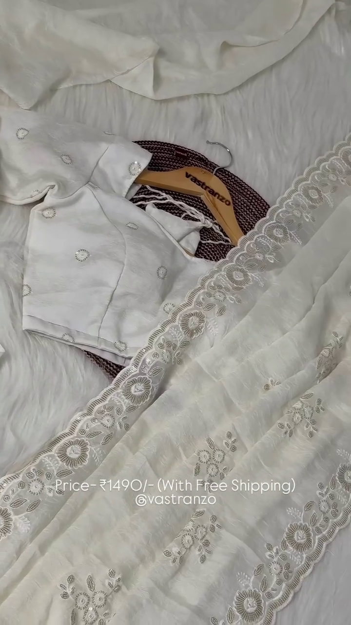 Fabric: Soft Chiffon with Heavy Floral Embroidery and Lace Border