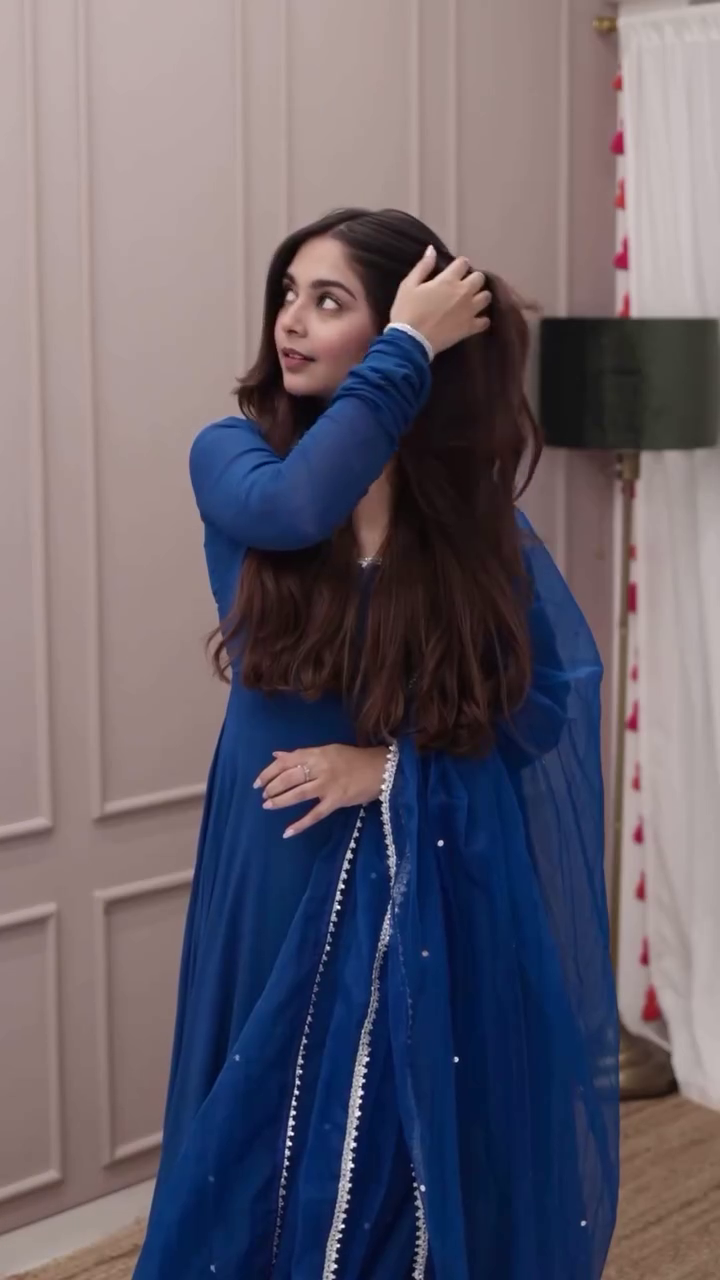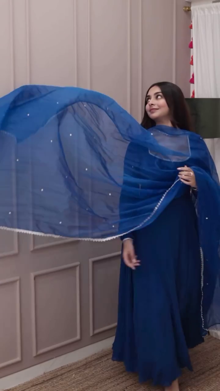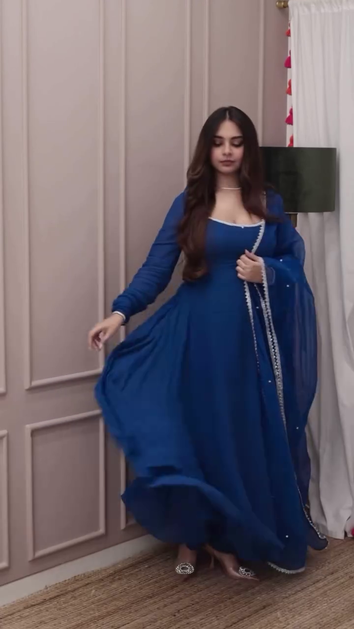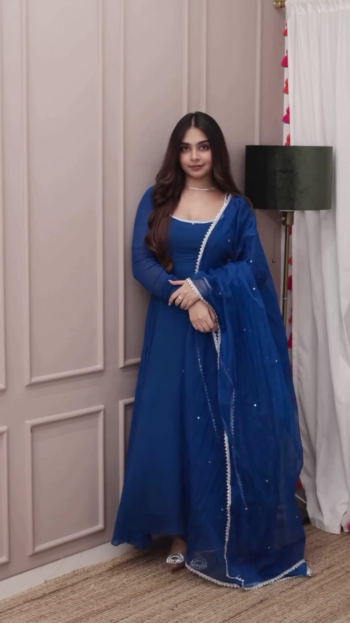 Royal Blue Georgette Anarkali Suit Set with Mirror Lace Dupatta